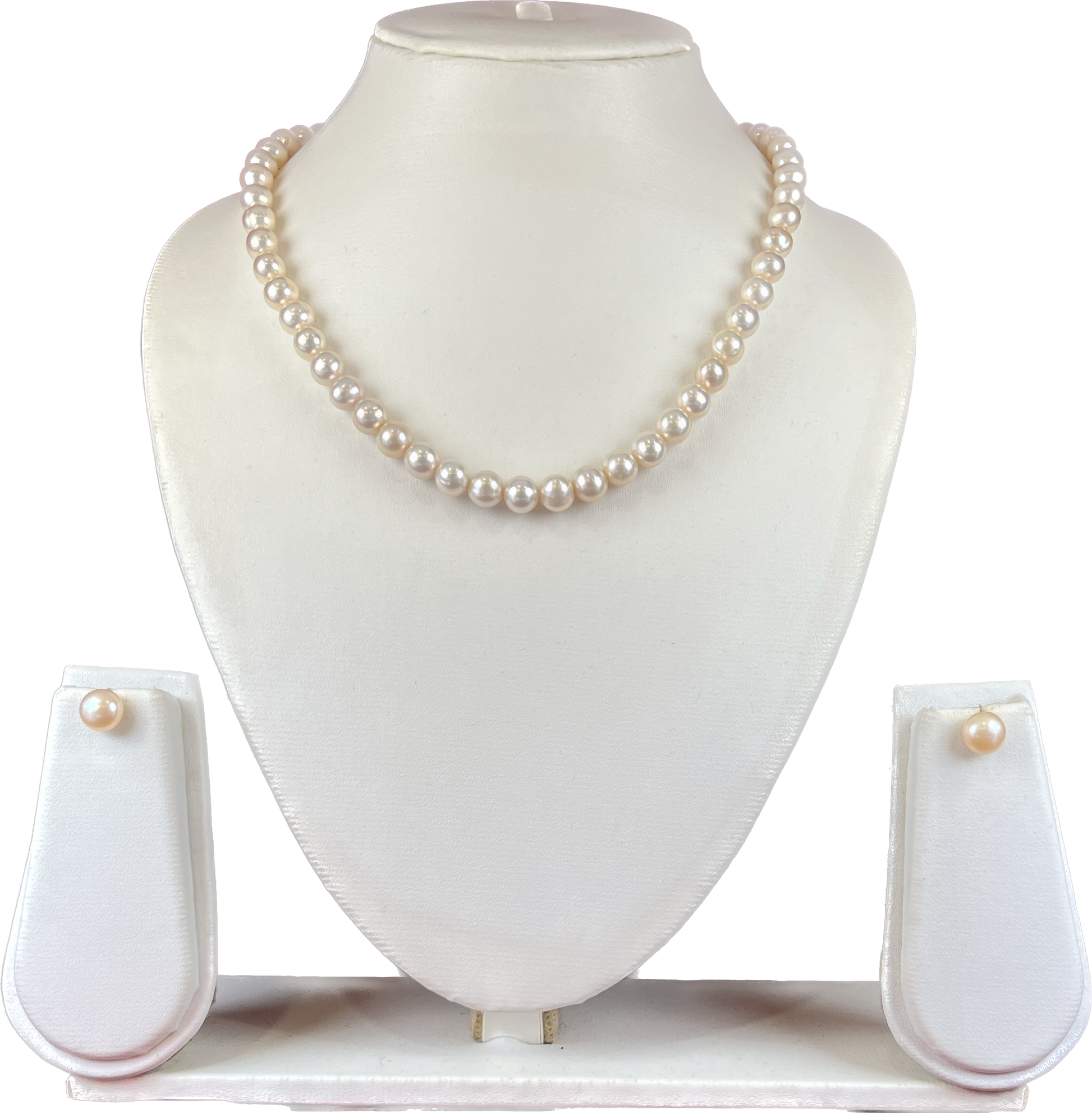 Adorn yourself with this stunning real pearl set. This exquisite set includes 8mm round light pink pearls that will bring elegance and beauty to your look. The set also comes with matching real pearl earrings for the perfect accessory to complete your look.