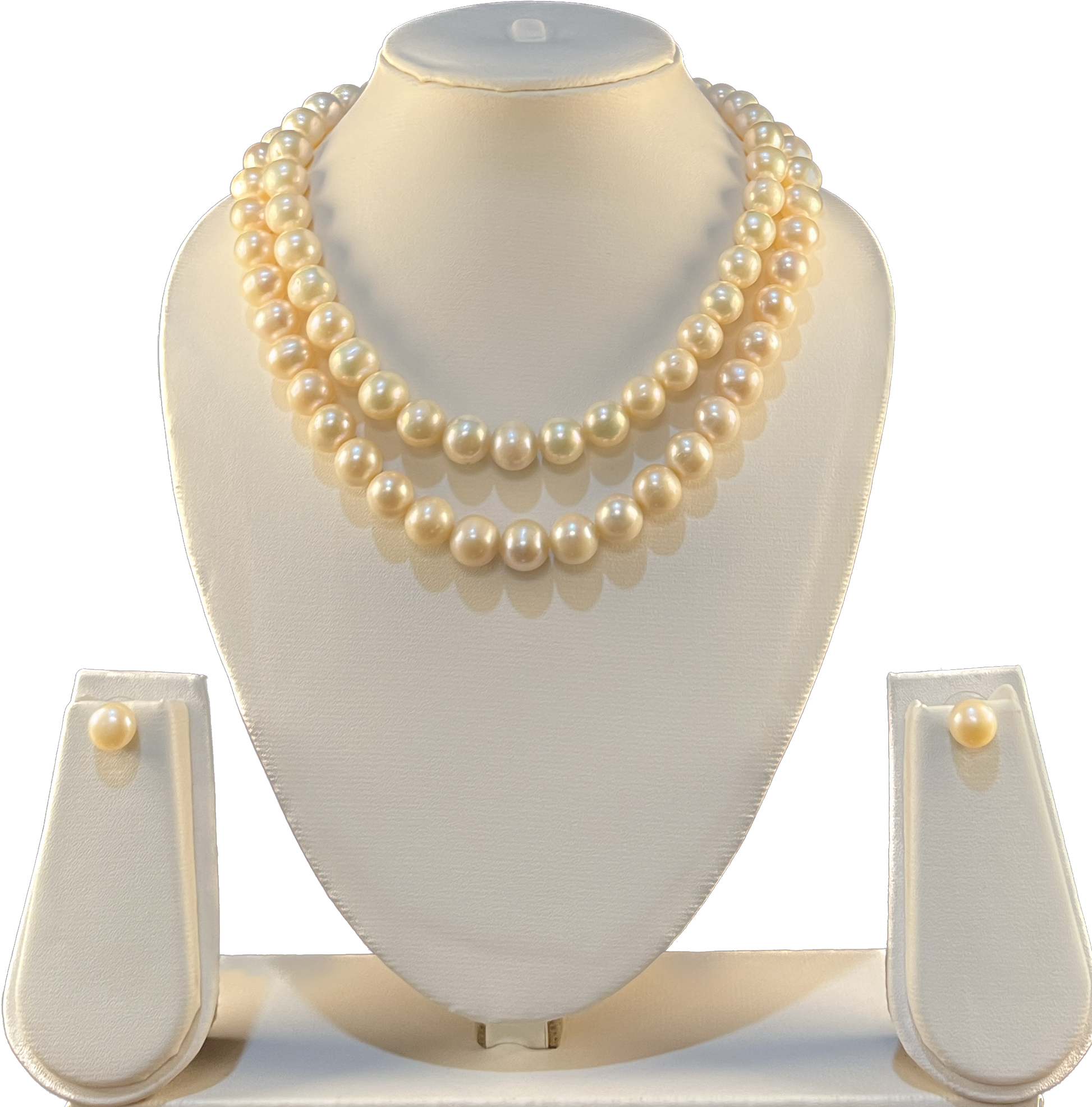 Two liner marvel - Ravishing 11 mm light pinkish tinge fresh water pearls. Comes with matching pearl studs.