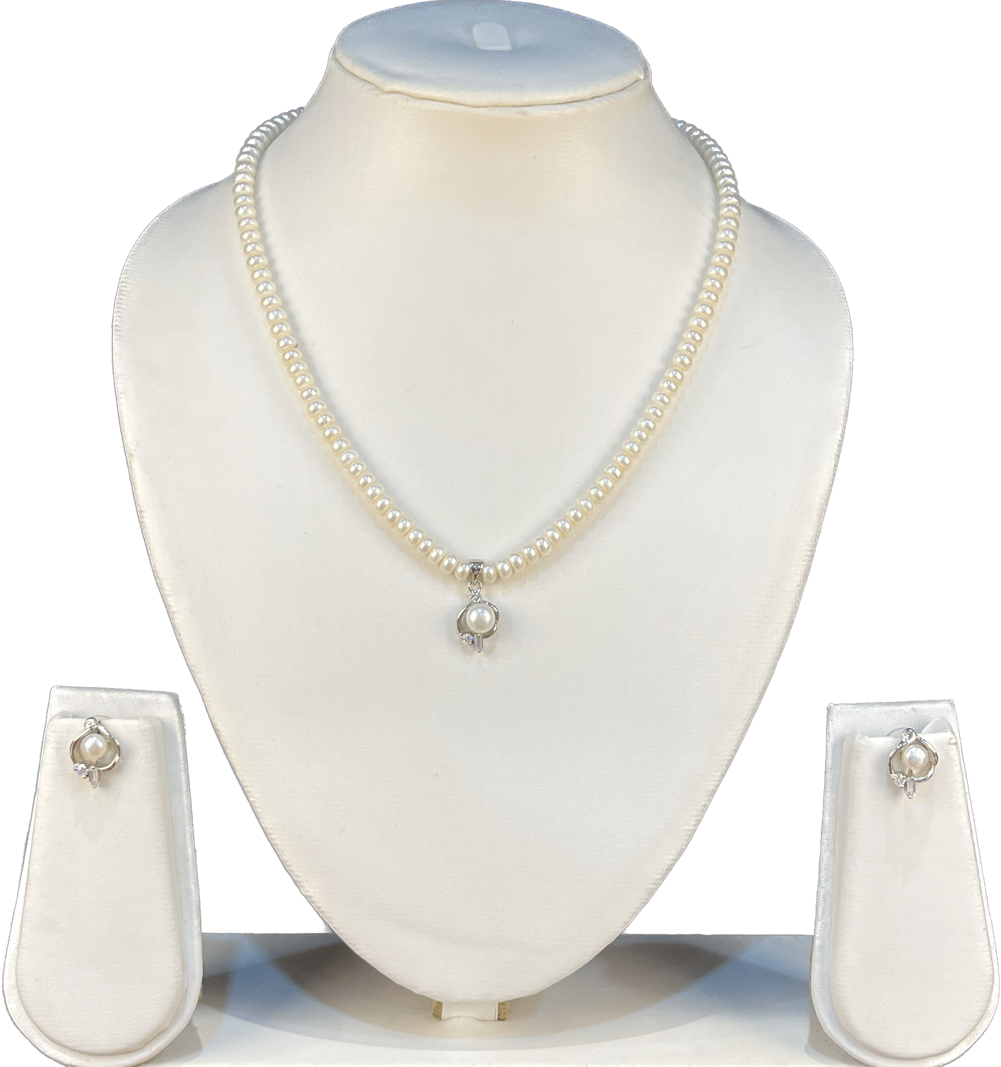 Cute ~ 4 mm white freshwater round pearl set with beautiful pearl studded pendant. Comes with matching earrings.