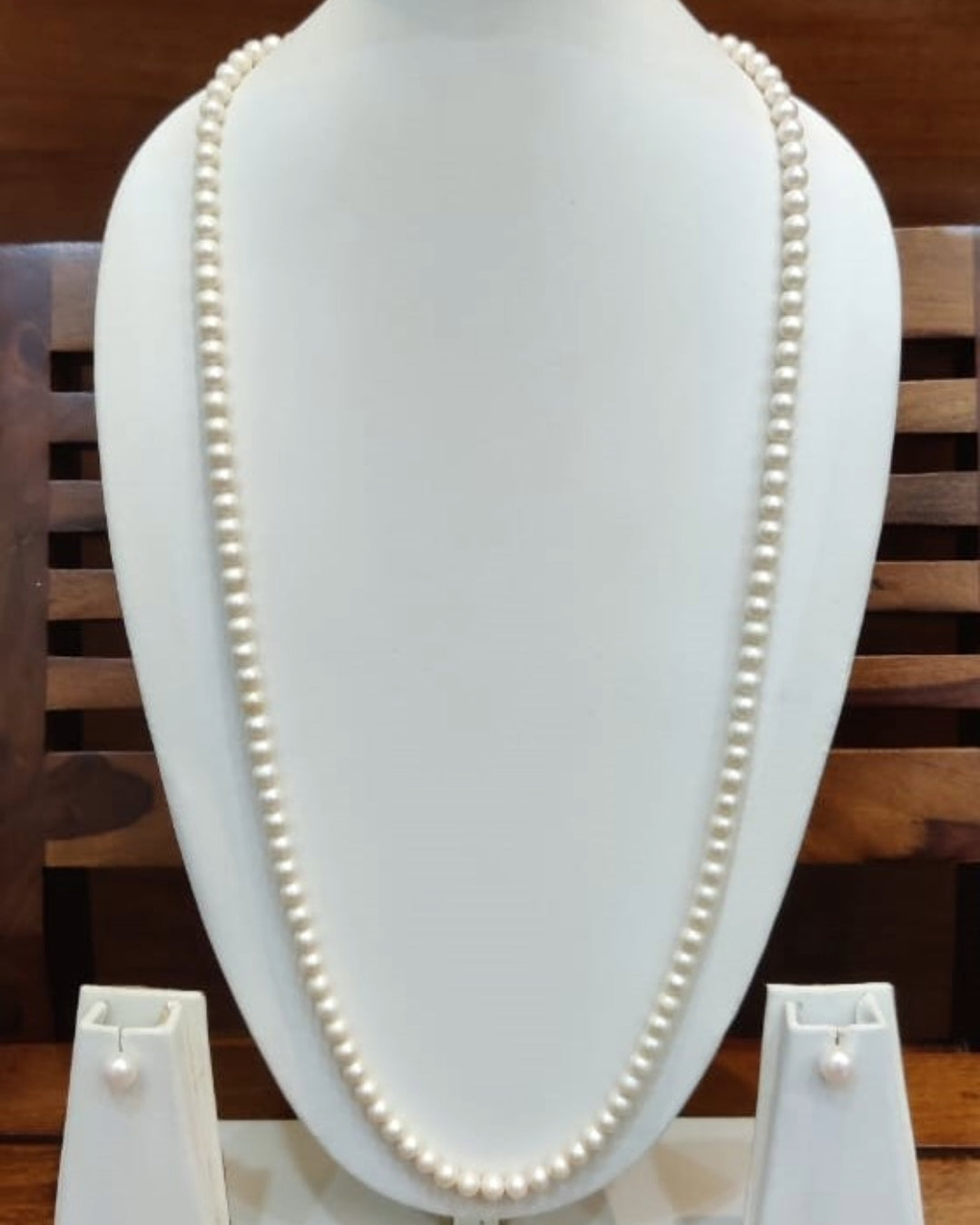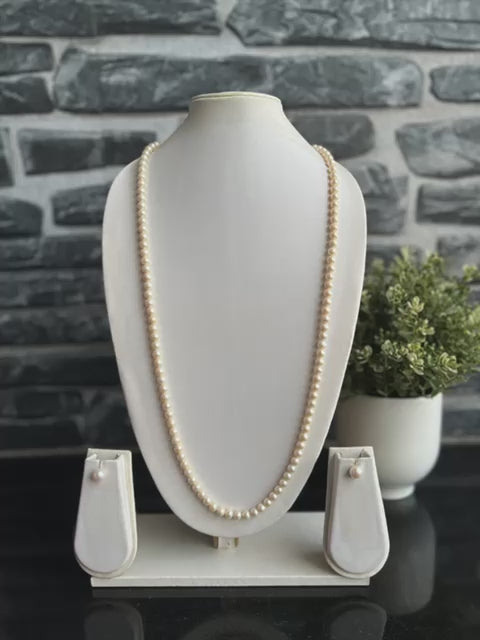 My Pearls 6 mm white Round Pearls Long Necklace Set